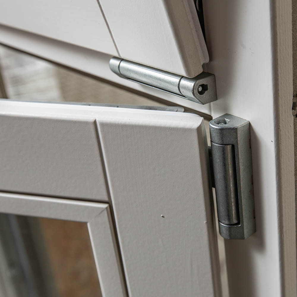 Unsere thermisch getrennte Regenschiene ist in den Farben Weiß, Silber, Mittelbronze und Dunkel-bronze erhältlich. Optional statten wir die Fenster auch mit einer Flügelfalzab-deckung aus. Für denkmal-geschützte Elemente verwenden wir einen massiven vorgesetzten oder eingehangenen Wetterschenkel aus Holz.